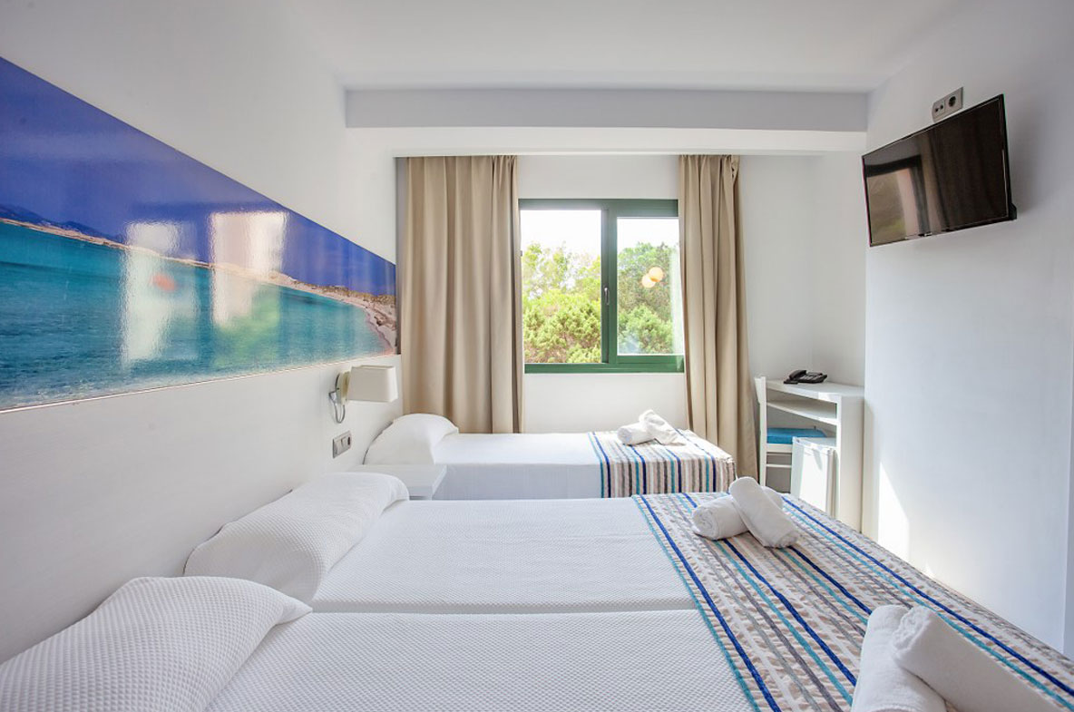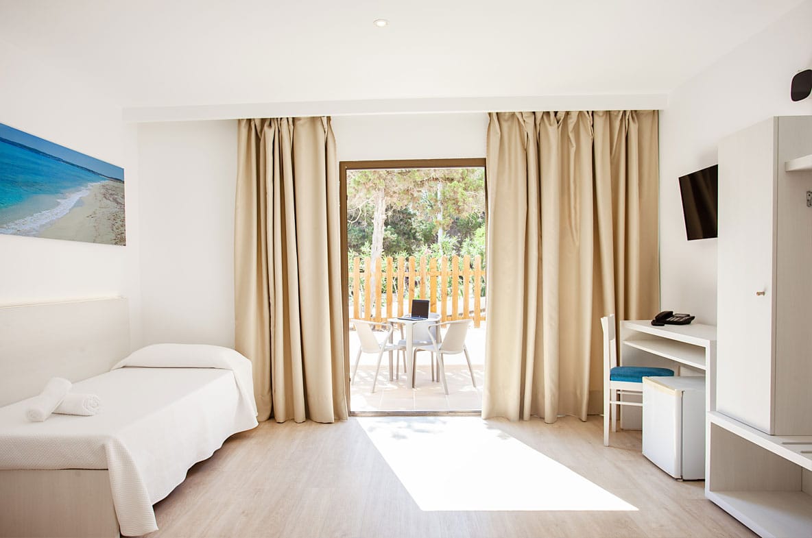 Camere hotel Formentera. Da 1 a 4 persone. Mettiamo a tua disposizione tutti i servizi necessari a garantirti il comfort e il relax che ti meriti durante le tue vacanze a Formentera.