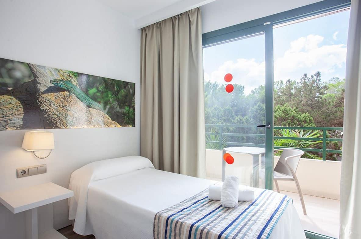 Se viaggi in famiglia o con un gruppo di amici, la camera tripla dell’Hotel Rosales Formentera ti offre la possibilità di avere fino a tre letti da 90×190 cm o un letto matrimoniale e un divano letto: l’opzione perfetta per trascorrere tutti insieme una vacanza sull’isola di Formentera.